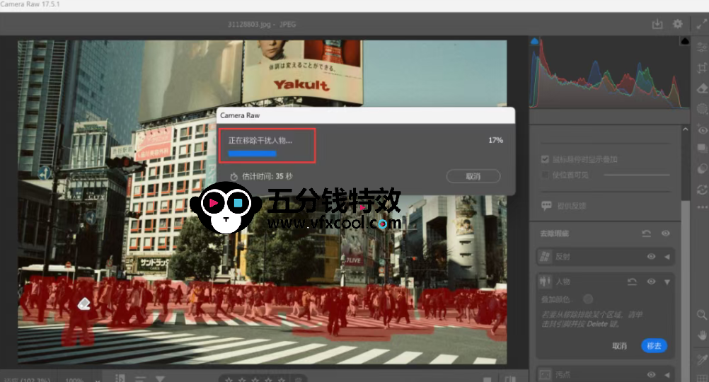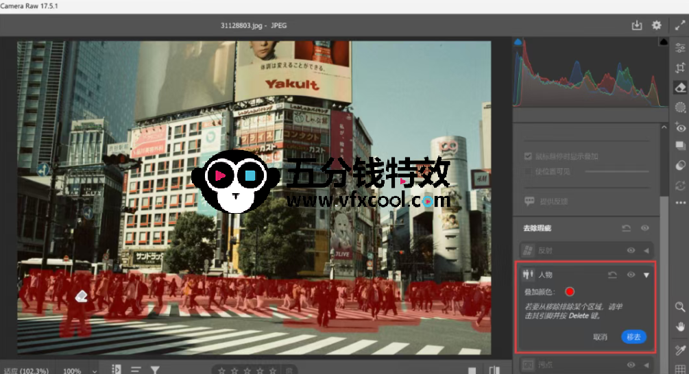 拥有干扰人物、去除反射、点颜色、镜头模糊新工具栏、