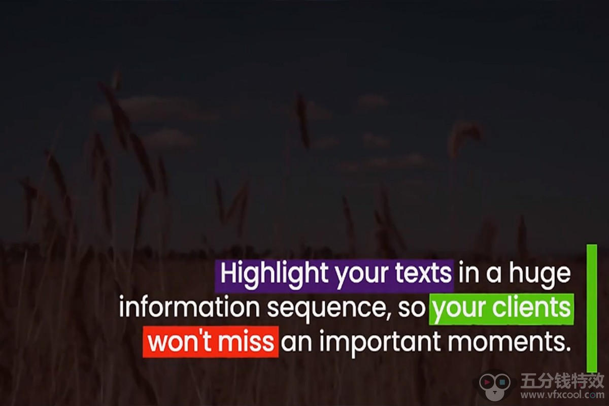 可用于强调文本的重要时刻。它包含2种类型的突出显示和3种类型的对齐方式。适合您的社交媒体视频、电视节目等。易于更改颜色、大小、位置和形状的长度。