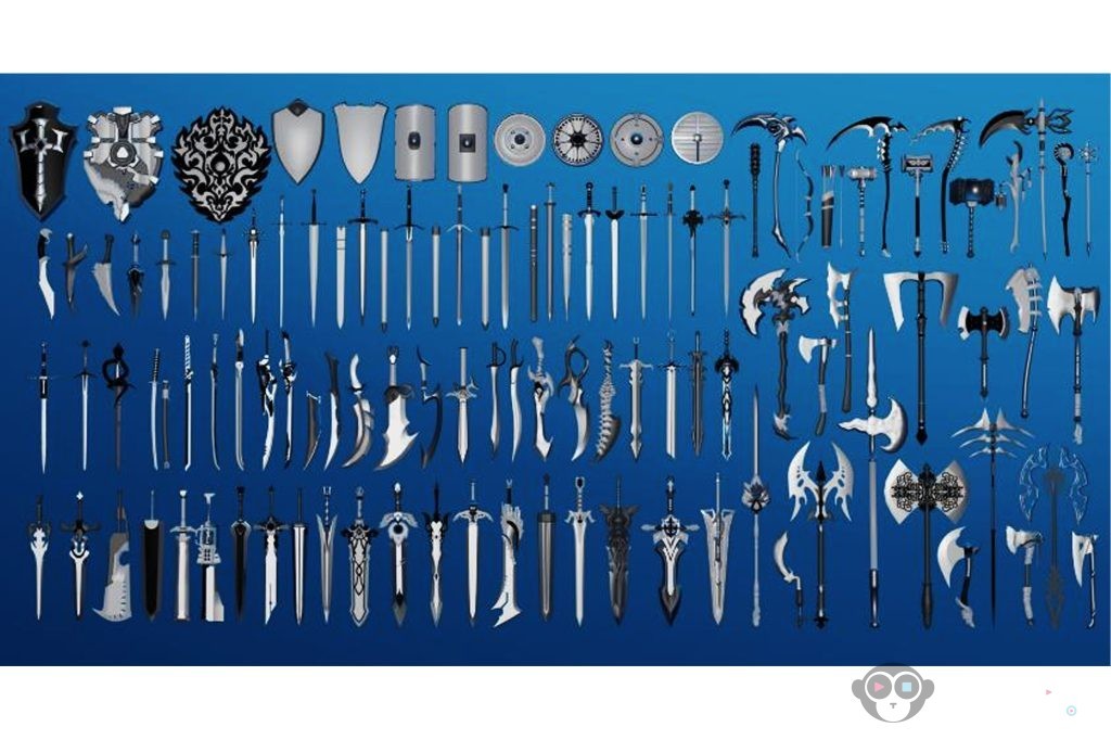 The pack includes a .Rar whit the 108 3D models of fantasy weapons.