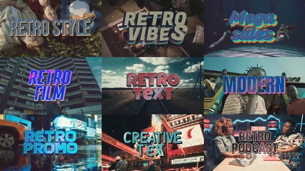 Vintage Retro 09 Text Intro Pack MOGRT凭借其复古风格和丰富的动画效果,是视频编辑者和创作者的理想选择,能够为您的视频项目增添独特的魅力。