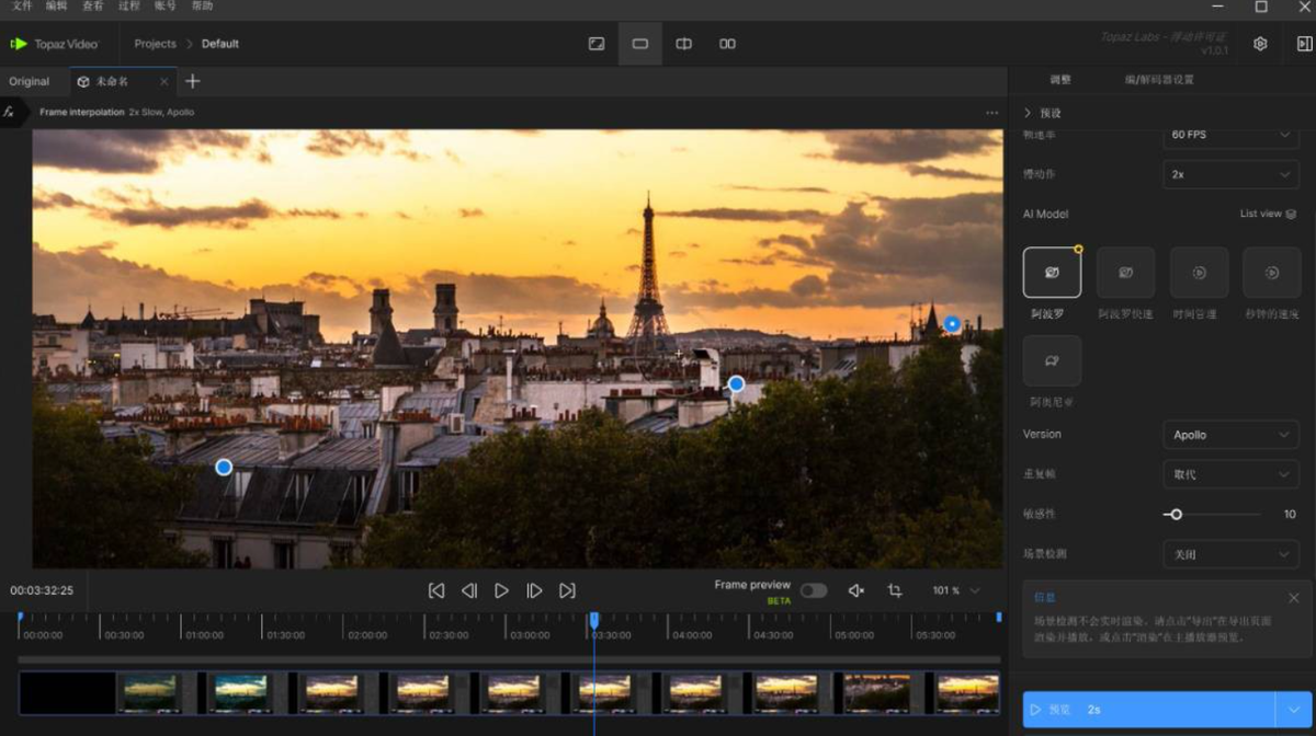 多种 AI 模型:有 5 种不同的行业领先的视频增强 AI 模型,可针对不同的输入类型和情况提供最佳结果,还能为 60FPS 转换或电影慢动作创建新帧,通过新的帧插值方法产生更平滑的结果并减少伪影。