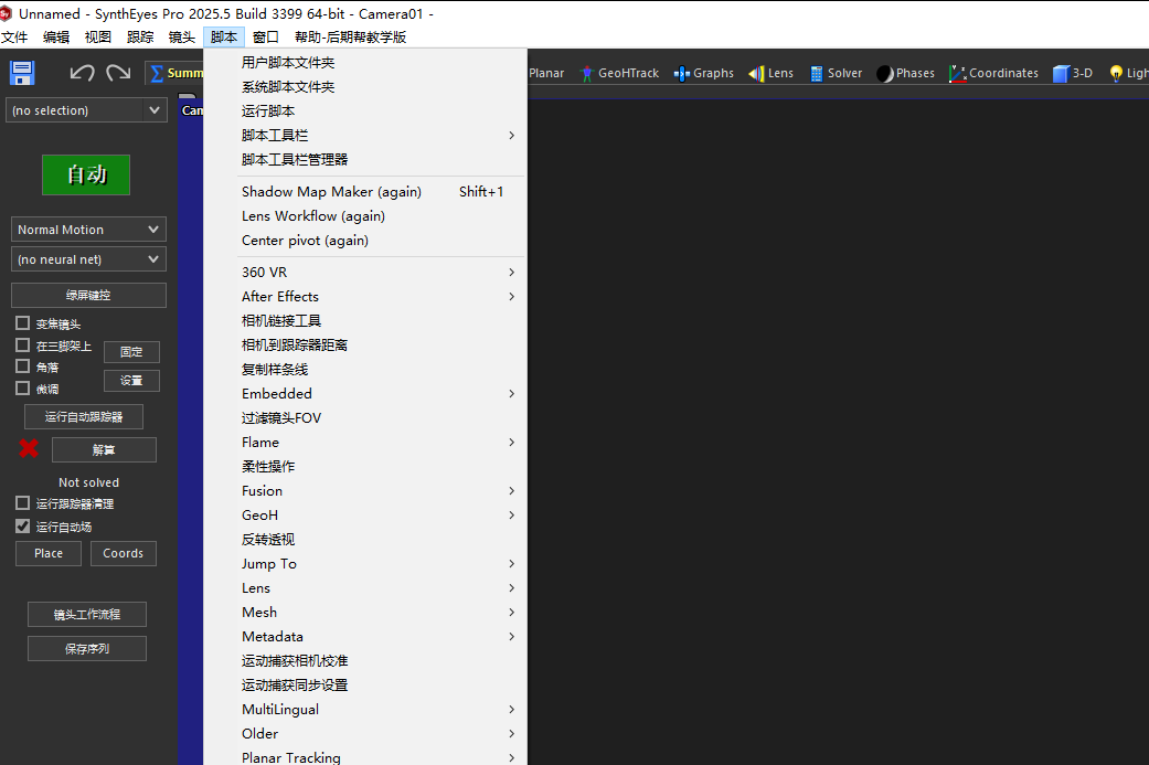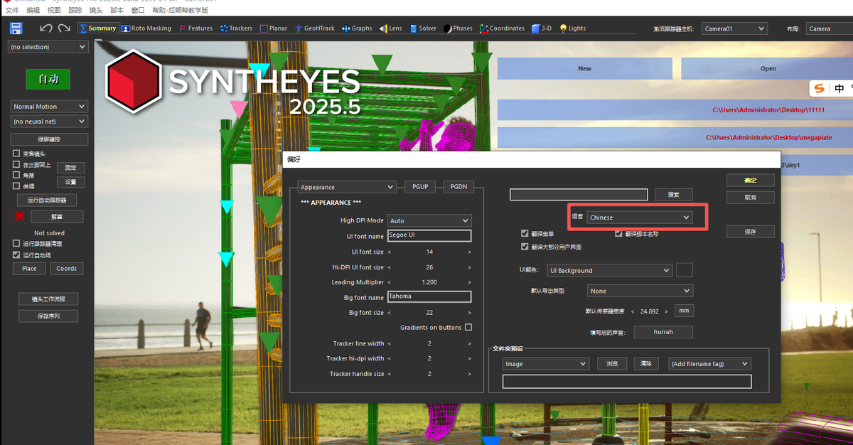 如何安装中文语言文件?将下载好的语言文件复制到 安装盘符:\Program Files\BorisFX\SynthEyes 2025.5\scripts\MultiLingual文件夹下替换原有的Chinese.csv文件即可。如图