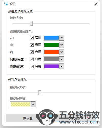 这个工具很小,不用安装,打开就能使用,使用起来非常简单。打开后,不论是点击左键还是右键都会显示一圈波纹特效。