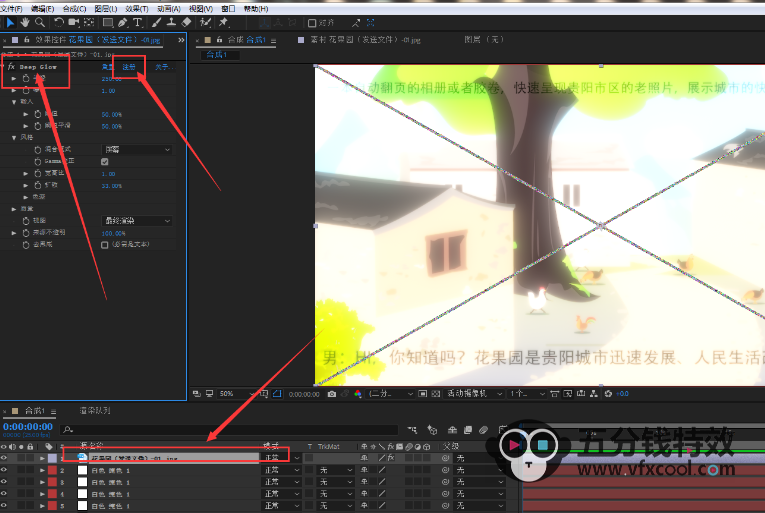 首先我们要找到我们是那个图层有用到这个插件。挨个进行查找排除。或者右侧插件栏搜索出来单独拖到固态层上面进行注册也行。我们就以这个Deep Glow为例子。按照上图在效果控制面板里面找到(没有控制面板按F3调出。)找到后点击注册。